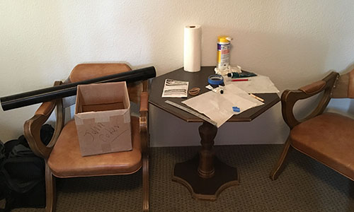 I build the motor Friday night in Bruno's per long-standing tradition. This is a 6-grain 75mm motor, so it looks quite impressive across the arms of the chair.