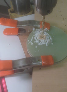 I drilled the four holes through all four bulkheads as indicated in the instructions. Then I drilled two 1/8" holes through all four as well; one for the e-match wire and one as a pilot for the larger CD3 holes.