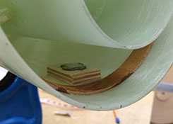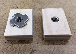 For this heavy a rocket, I wanted to make sure the rail buttons were securely mounted. These are large rail buttons, mounted with a ¼-20 screw, so I mounted the T-nut into pieces of 12mm birch ply to create a large area for bonding.