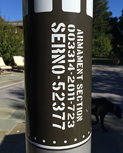 The color came out darker than I expected, but I got Mark Hayes to make me a version of his excellent vinyl decals in white; see Stickershock23.