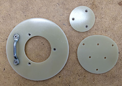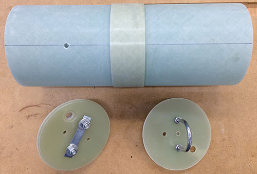 In the picture, above right, you can see the ½" hole for the CO2 cartridge neck on the larger bulkhead and the matching 1" hole through smaller bulkhead for clearance. Otherwise, the two pairs of bulkheads (one for each end of the electronics bay) were drilled and bonded together following the instructions.