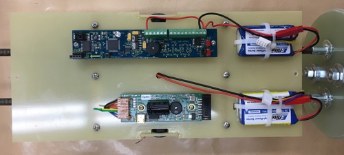 And finally the electronics bay loaded with dual altimeters. This rocket is supporting old-school units: an AED R-DAS and a G-Wiz HCX. These units are both designed to work with 9v batteries, but I decided to drive them with 3-cell LiPos, which is more convenient and provides much more power.