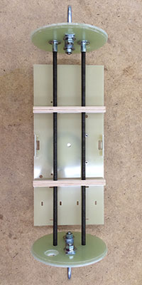 The huge amount of space for the electronics bay is dominated by two 5/16" threaded rods that run through the center. This means no GPS tracker (or other radio transmitters) in this part of the rocket!