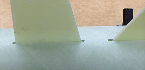 four of the six fin slots needed only minor filing and sanding for a perfect fit, but I had to get out the Dremel and grind the other two to the correct width (adding something near 1/16").