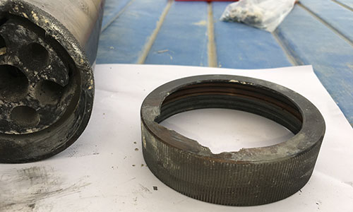 When I went to clean the motor case, it became apparent why I'd gotten much less altitude. Two of the outer throats of the medusa nozzle cracked and thrust was directed to the side, torching two sections of the aft closure and two areas of my AeroPack retainer.