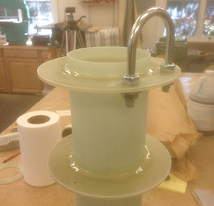 If you look closely at the right plate (left photo above), you can see how I mitered the edges of the plywood to create a large surface area on the inside of the tube.