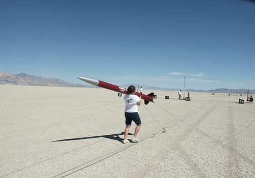 Cara was a real trouper. She carried the rocket up to to RSO stand and held it during the pictures and for the RSO. She even carried it out to the launch pad. (This is a 44# rocket!)