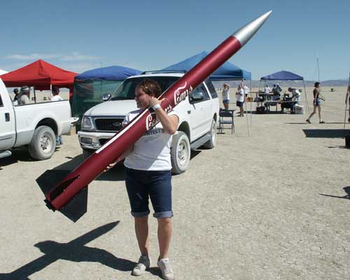carrying the rocket out to the pad, under the direction of Sue McMurray.