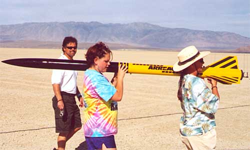 We loaded the rocket onto a club rail without much trouble and took the obligatory dumb rocket picture: