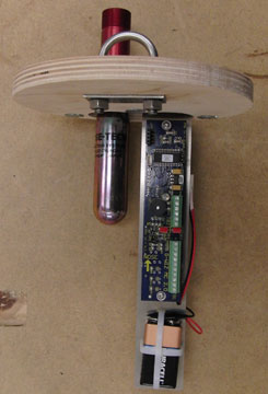Above you can see the assembled bottoms showing how the electronics mount top fits inside the bottom and is fastened using three machine screws into T-nuts. Below you can see how the altimeter (a G-Wiz MC2) is mounted and wired up to a Rouse-Tech CO2 ejection system.