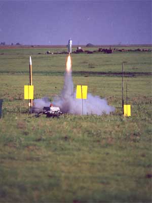At the August 2002 AERO-PAC launch (Aeronaut 2002), I flew the small version again, this time with slightly larger fins. (See the Fifth-size Model section below for more info.)