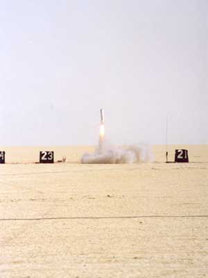 The sequence above (down the left) shows four stills of the liftoff and flight. Click on the smaller images to display a larger image on the right side. The rocket wobbled a lot on the way up, which isn't shown well by a sequence of still photos.