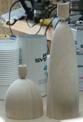 Above, you can see the plans I drew for the smaller version as well as the turnings that came back from San Francisco Wood Turning.