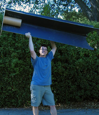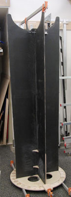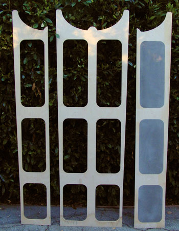 In the picture above, you can see all three fin pieces, which will be assembled into a cross with the two single-fin pieces butting against the center of the double-fin piece. The single-fin piece on the right already has the foam panels installed.