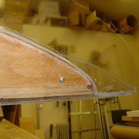 Each of the ribs had to be cut a different radius and its curved edge beveled to match the angle of the stringers at that point.