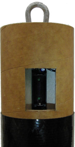 In the picture above you can see a view from the top (forward end) of the sustainer electronics bay. The aluminimum plate is the mounting for a CD3 unit for the main parachute deployment.