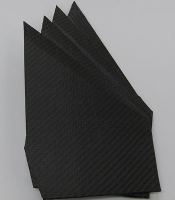To wet out the cloth, I painted epoxy on the core blanks, then applied the carbon fiber cloth and finally painted more epoxy into the cloth to fully saturate it. Excess epoxy is removed by the vacuum bagging process; it migrates through the release fabric and into the heavy breather.