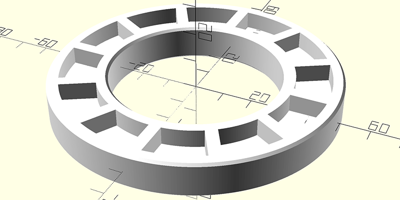 In order to make it easy to experiment, I programmed a ribbed CR in OpenSCAD. This allows me to define input parameters to adjust the size, thickness and number of ribs. It also means that the CR will "scale up" automatically based on the OD. You can download the file here: CR v1.scad. If you haven't experimented with OpenSCAD, I hightly recommend giving it a try (it's free).