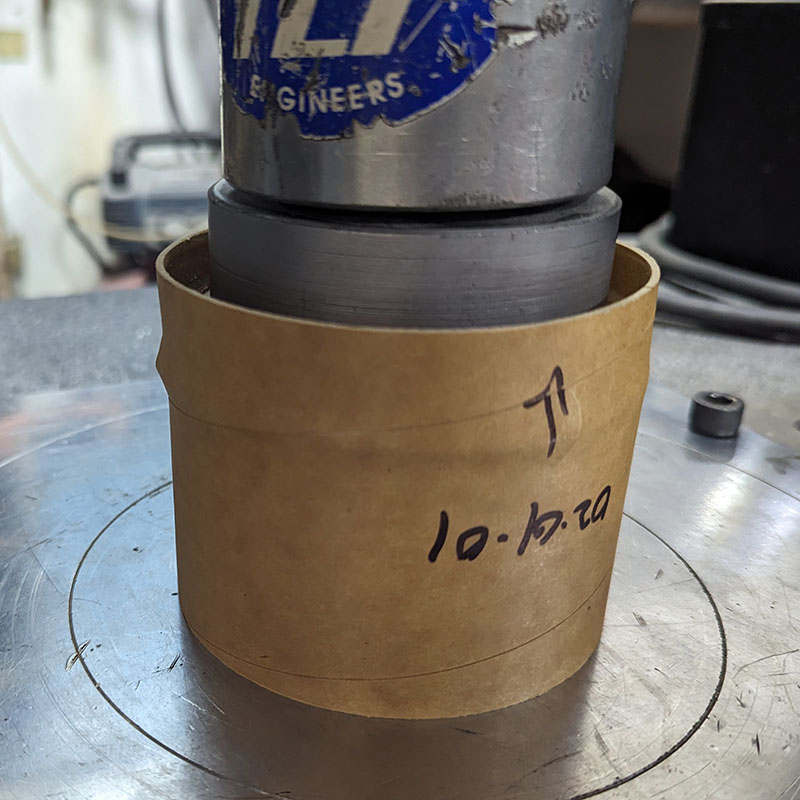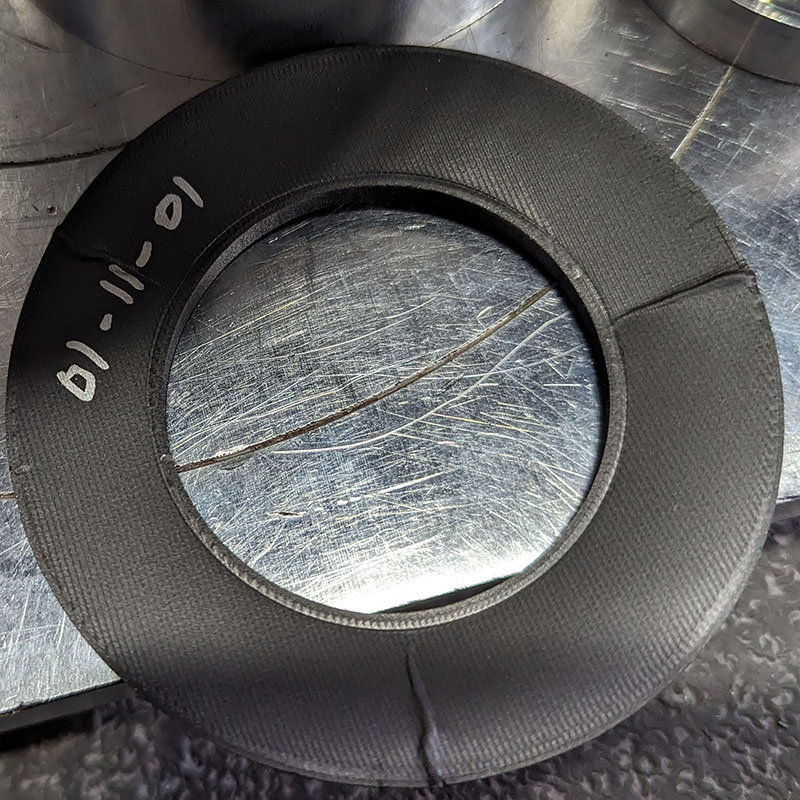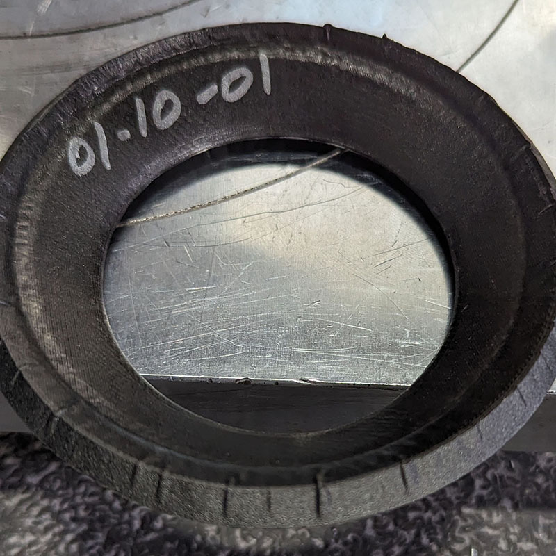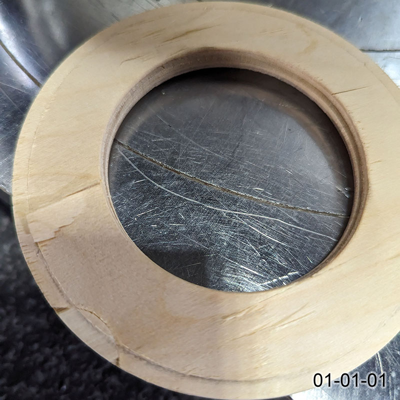 Break epoxy bond by pulling on center. Test the weakest component of a bonded bulkhead by pulling a ¼" bolt/fender washer through a hole in the center. |