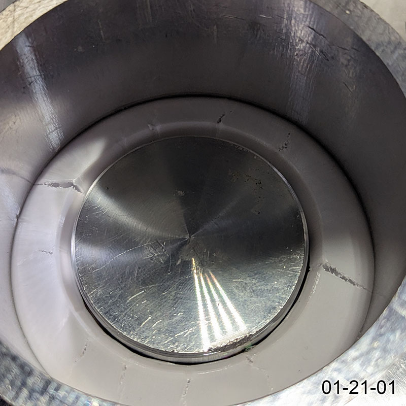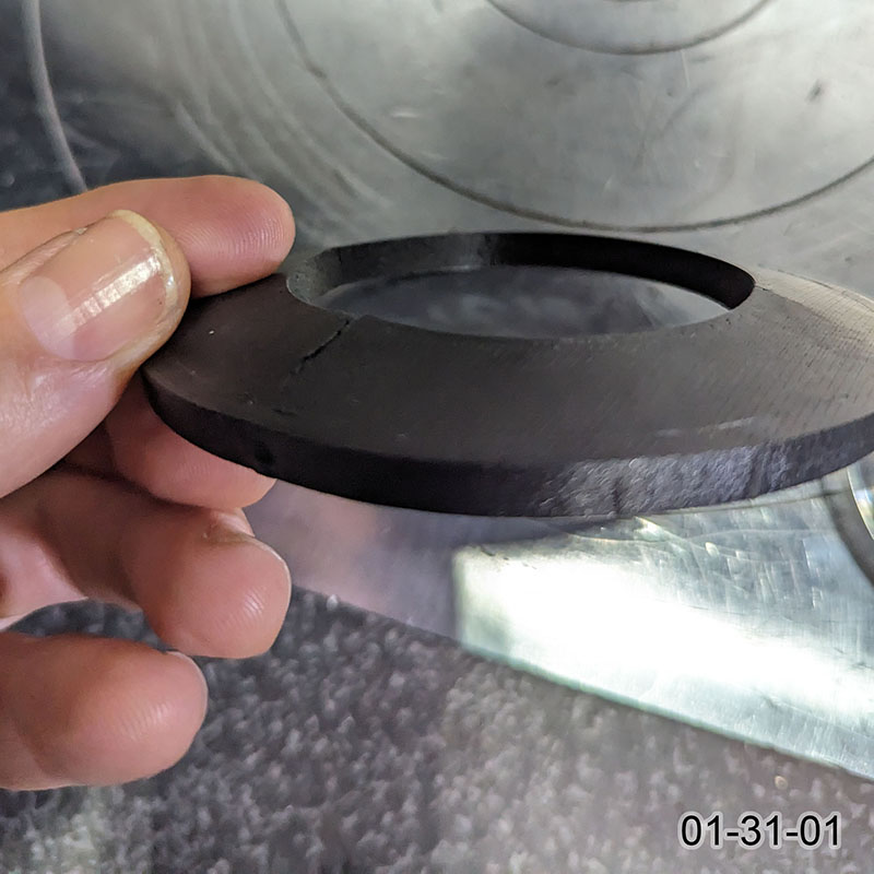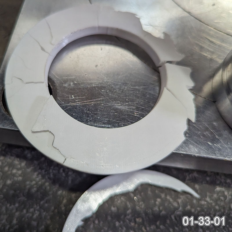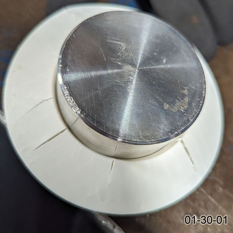 Break epoxy bond by pushing on center. Test the weakest component of a bonded CR by pushing a lip on the inside of the CR. |