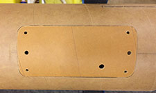 To install the hatch, the mount plate is simply bonded in place to the inside of the airframe, lining up the mount with the airframe cutout. The cover remains loose, but holes are drilled through the cover and mount plate for retaining screws.