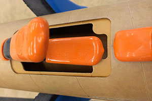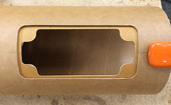 Remove the top, clean up the edges with a little sandpaper, and your cut is done. In the picture above, I've just cut out the cover mount from a scrap of airframe tube. If you need more than one mount, turn the tube segment around and cut another one.